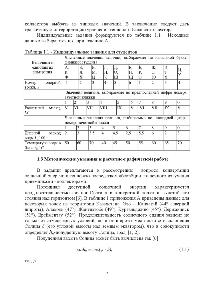 1 Расчетно-графическая работа № 1. Определение характеристикинсоляции и расчет параметров солнечного коллектора