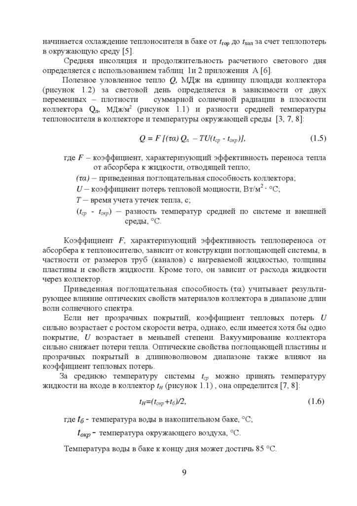 инсоляции и расчет параметров солнечного коллектора………………...
