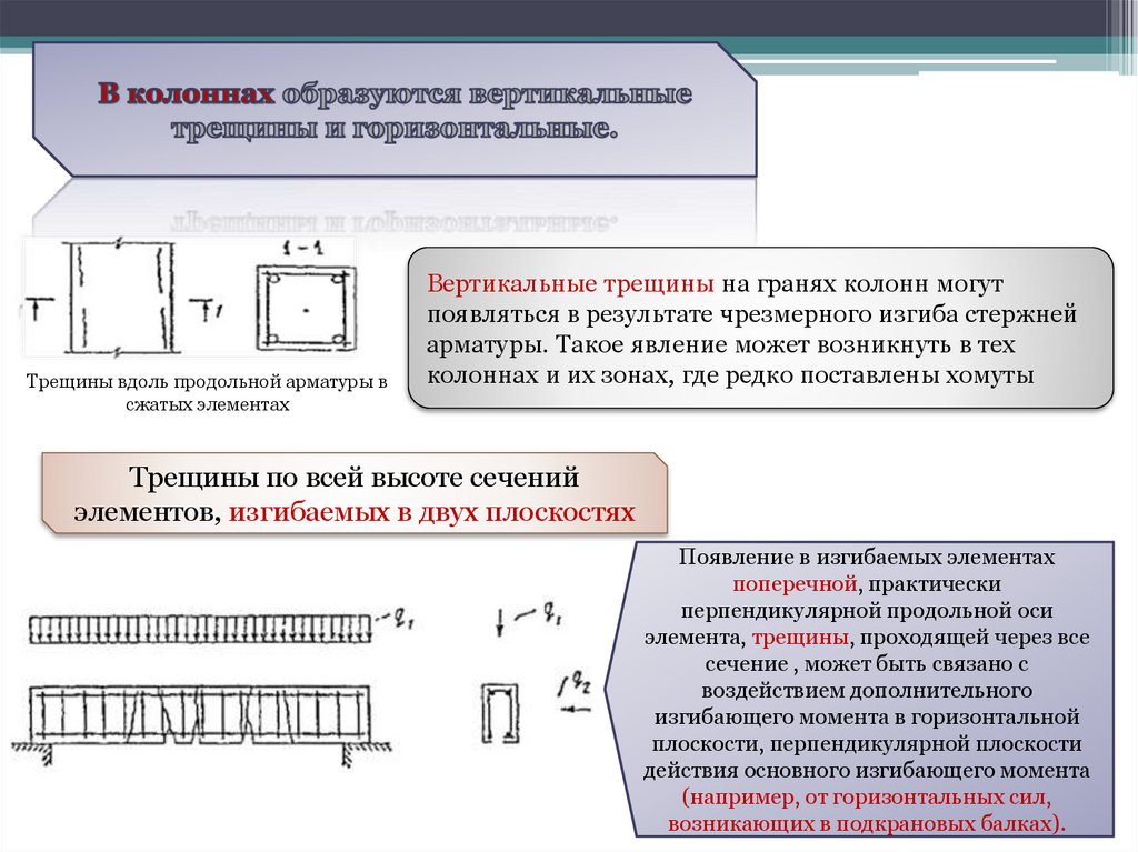 Вертикальные трещины на гранях колонн могут