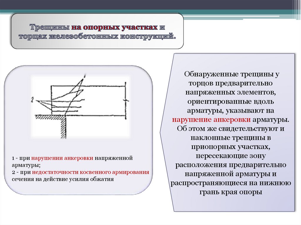 1 - при нарушении анкеровки напряженнойарматуры;
