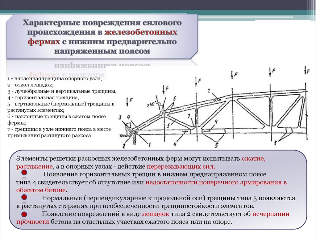 6 - наклонные трещины в сжатом поясе
