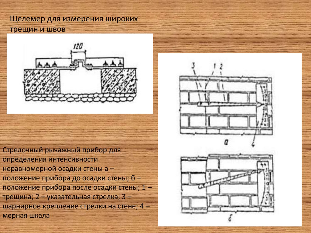 • Для наблюдений за трещинами и осадками в стенах применяют