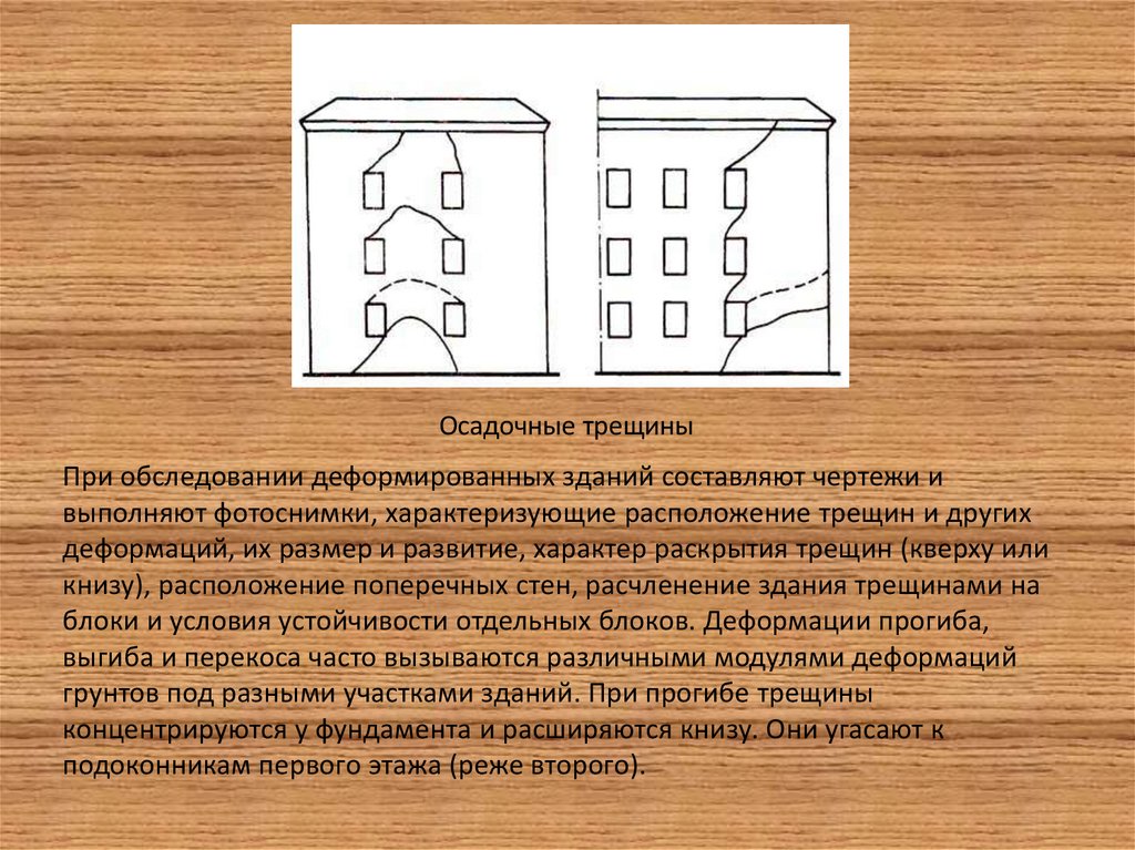 Осадочные трещиныПри обследовании деформированных зданий составляют чертежи и