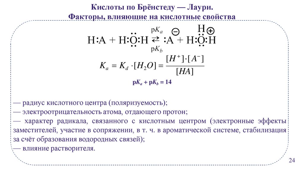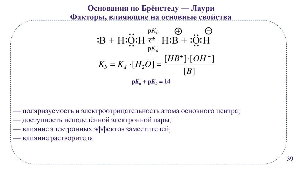 Основания по Брёнстеду — ЛауриФакторы, влияющие на основные свойства