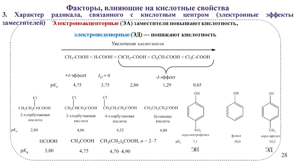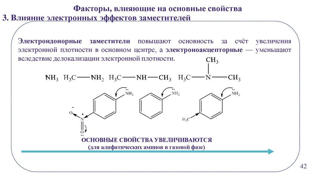 Факторы, влияющие на основные свойства3. Влияние электронных эффектов заместителей