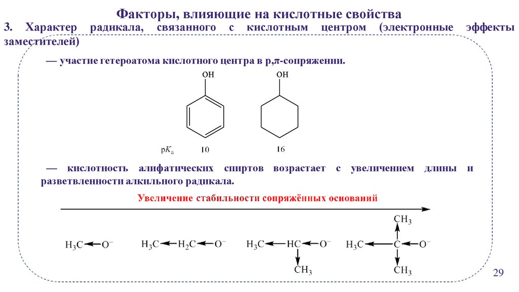 Взаимное влияние атомов в молекуле. Кислотно-основные свойства.