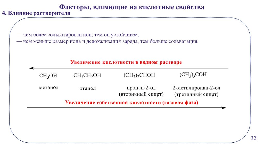 Факторы, влияющие на основные свойства4. Влияние растворителя