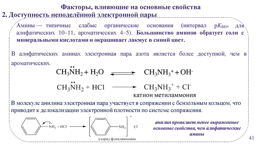 алифатических 10–11, ароматических 4–5). Большинство аминов образует соли с