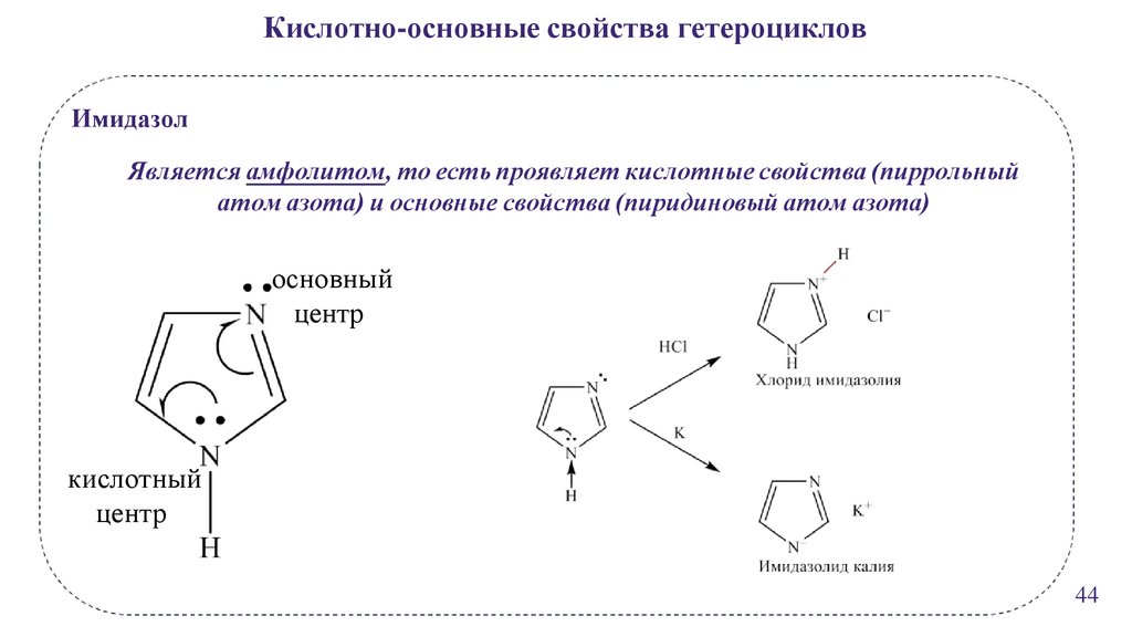 Является амфолитом, то есть проявляет кислотные свойства (пиррольный