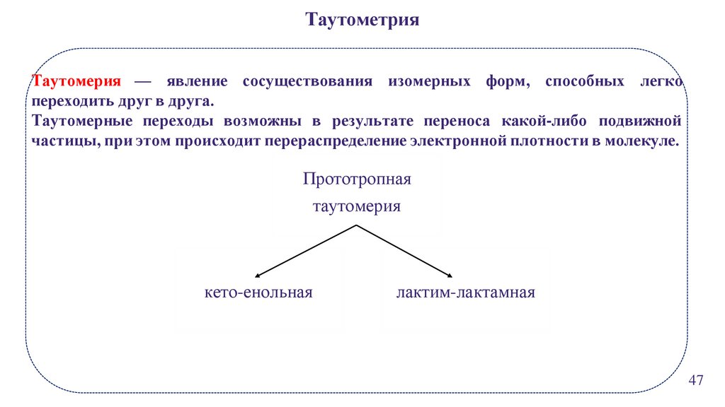 ТаутометрияТаутомерия — явление сосуществования изомерных форм, способных легко