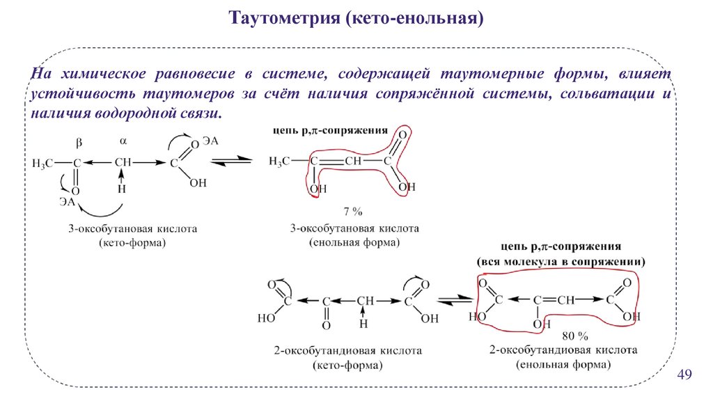 Таутометрия (кето-енольная)На химическое равновесие в системе, содержащей таутомерные формы, влияет