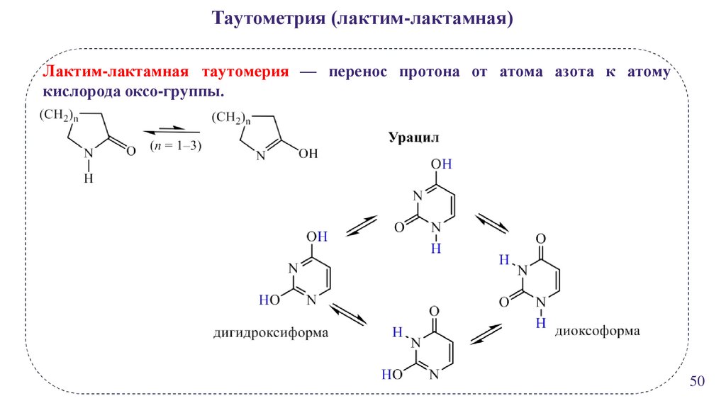 Таутометрия (лактим-лактамная)Лактим-лактамная таутомерия — перенос протона от атома азота к атому