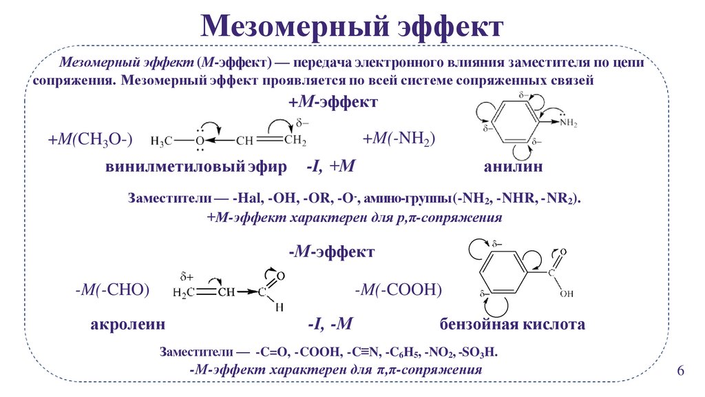 сопряжения. Мезомерный эффект проявляется по всей системе сопряженных связей