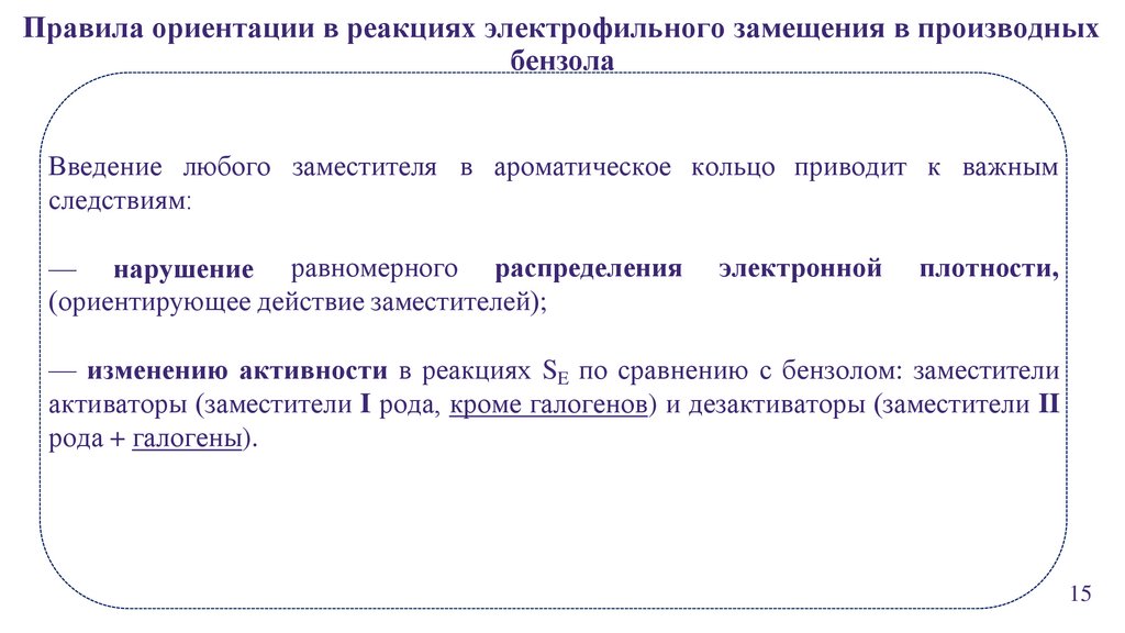 электронной плотности в основном центре, а электроноакцепторные — уменьшают