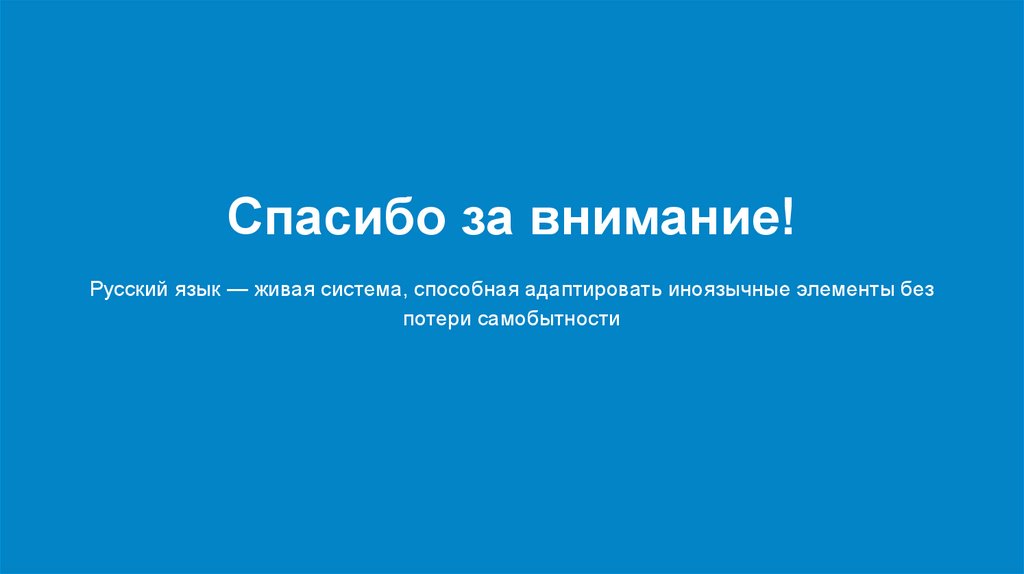 Спасибо за внимание!Русский язык — живая система, способная адаптировать иноязычные элементы без