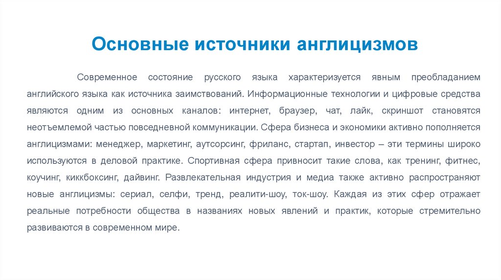 Основные источники англицизмовСовременное