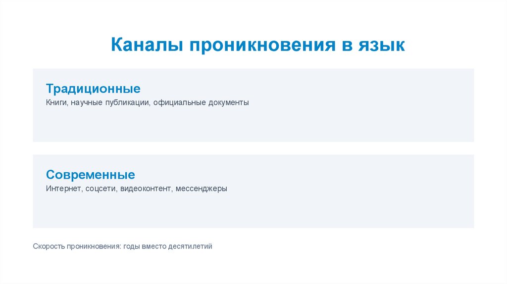 Каналы проникновения в языкТрадиционные