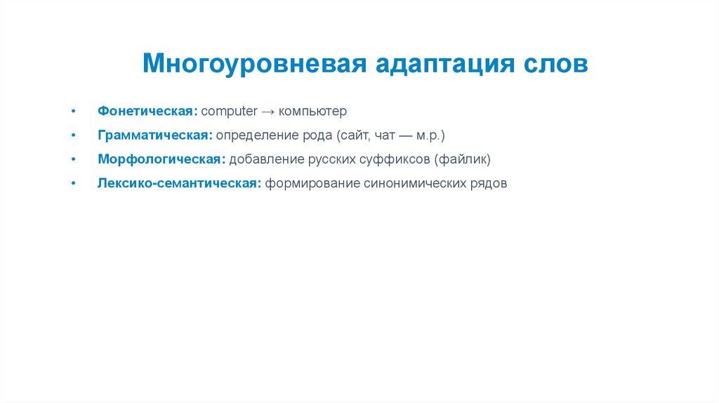 Многоуровневая адаптация словФонетическая: computer → компьютер