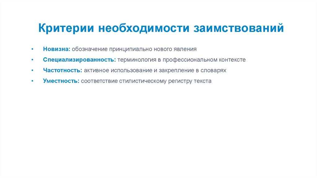 Критерии необходимости заимствованийНовизна: обозначение принципиально нового явления