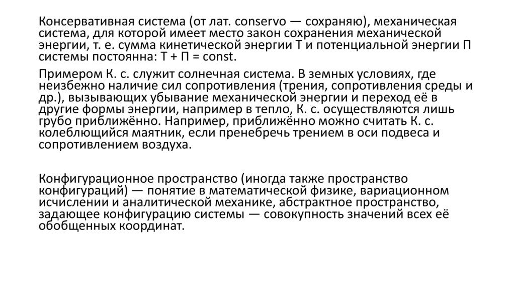 под действием внешних, консервативных и диссипативных сил,