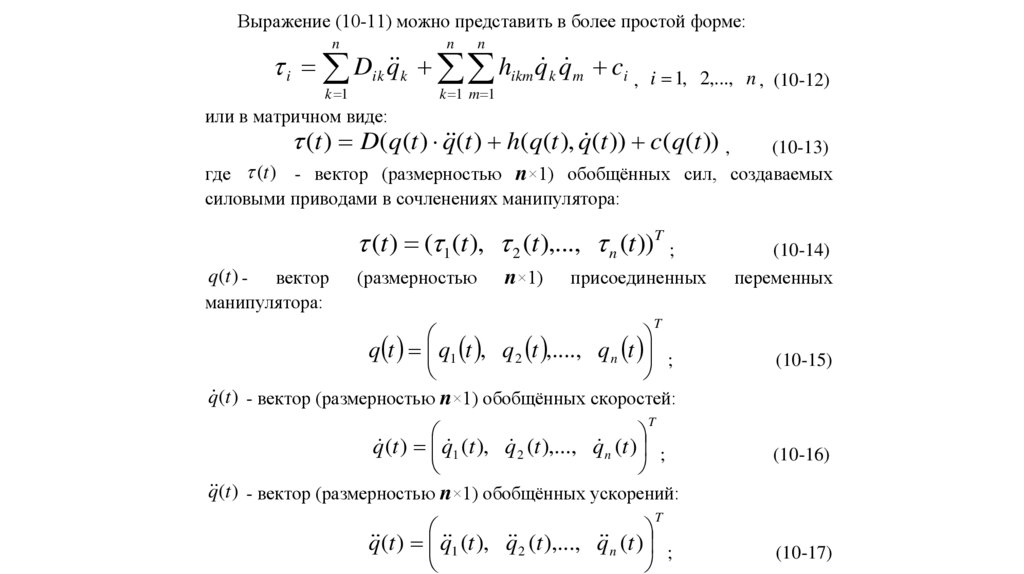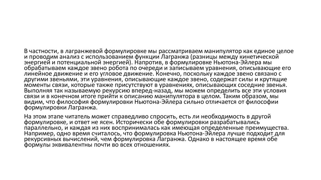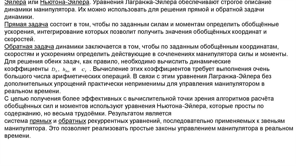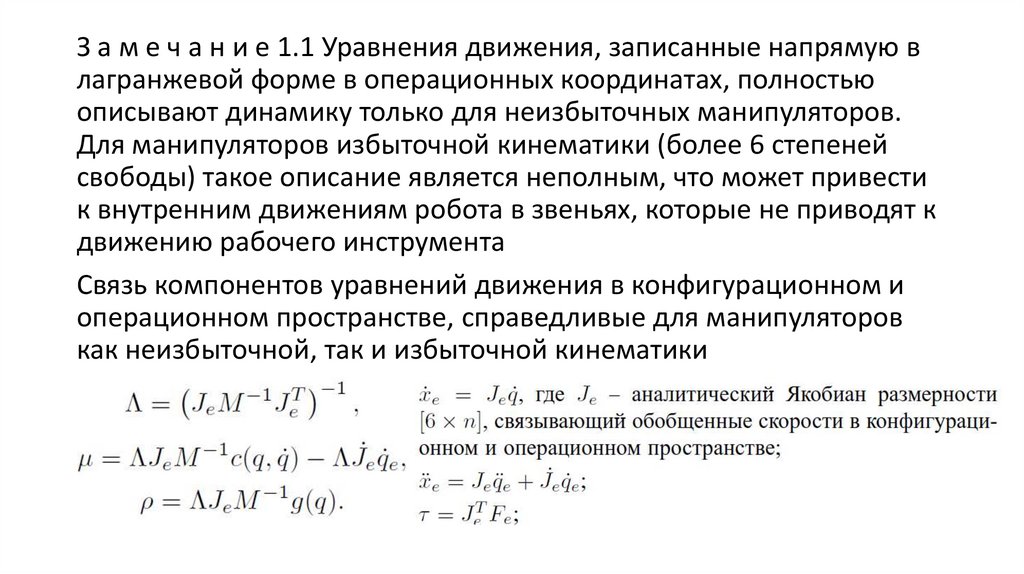 Свойства уравнений движения робототехнических систем, которые