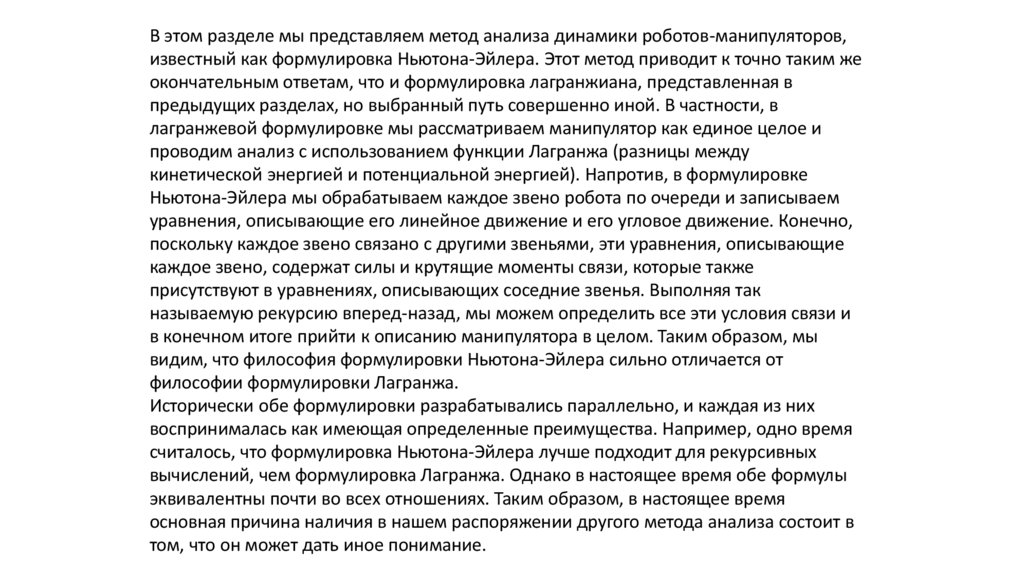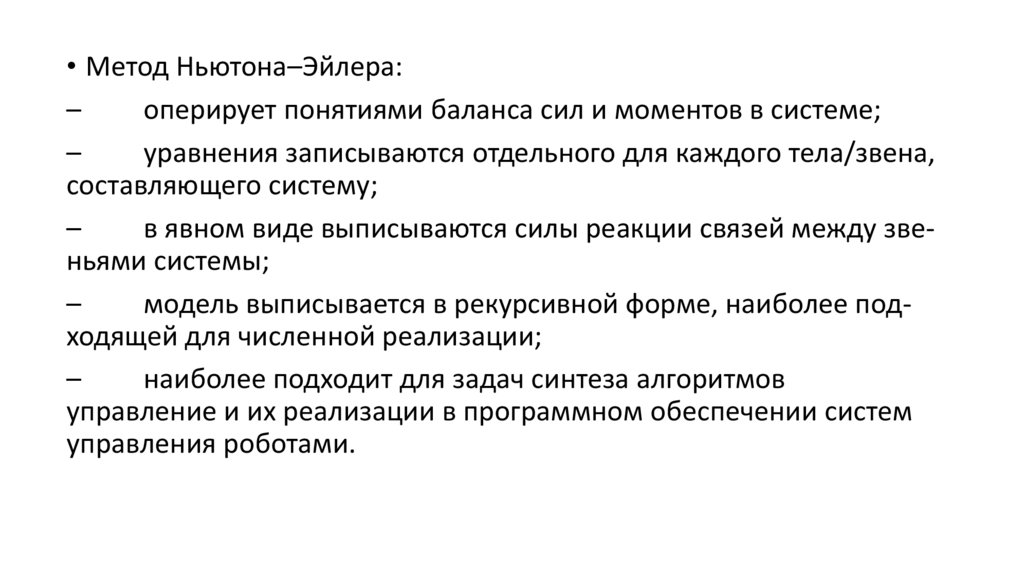 Метод Ньютона-Эйлера, для которого отправной точкой является баланс