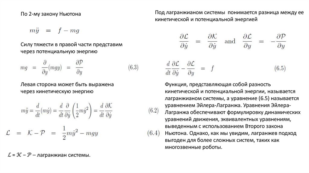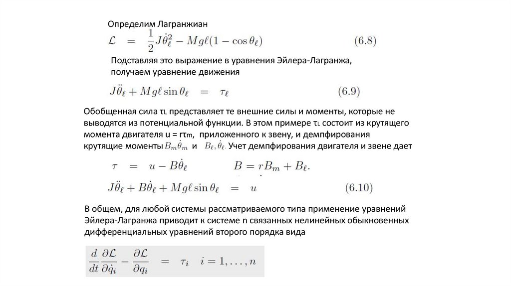 Вывод уравнений движения на основе метода Эйлера-Лагранжа,
