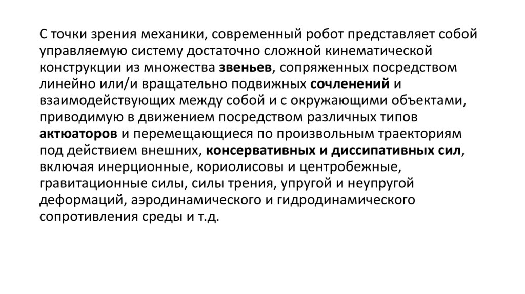 С точки зрения механики, современный робот представляет собойуправляемую систему достаточно сложной кинематической