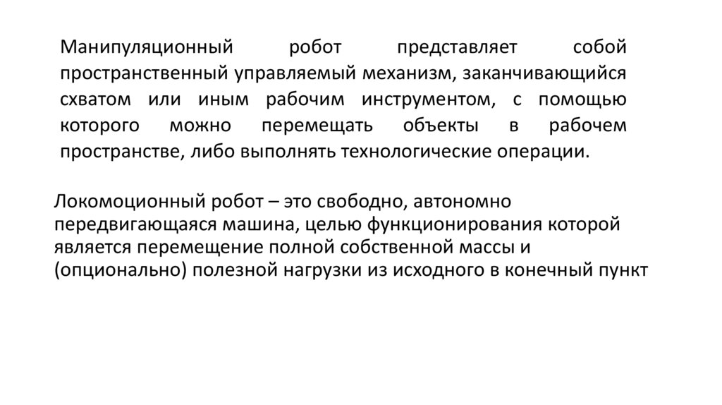 • Робототехническая система (робот) – это совокупностьмеханизмов и устройств (электронных, электрических,
