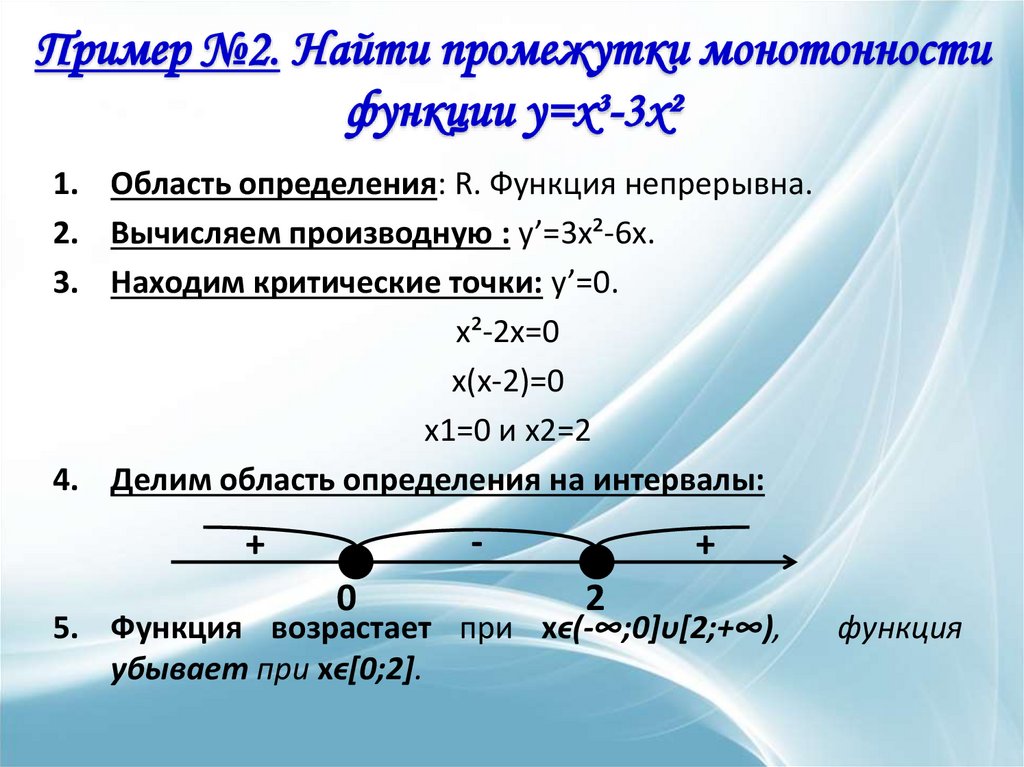 2. Находим производную: y’=(1/3x3-2x2+3x+1)’=x2-4x+3.