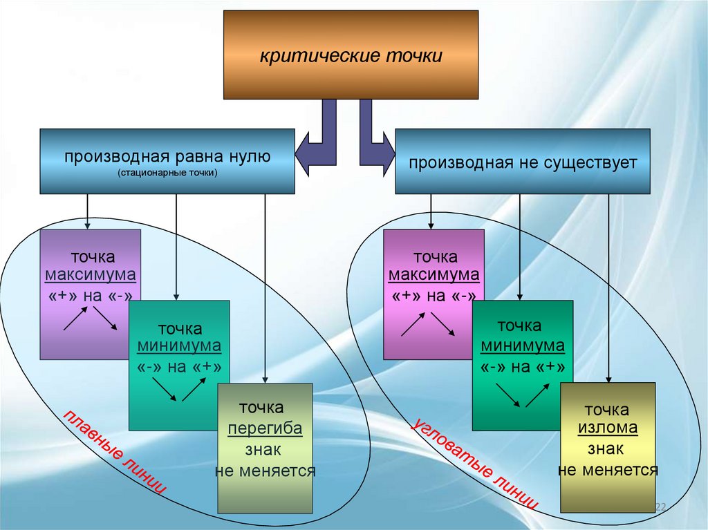 Внутренние точки области определения функции, вкоторых производная равна нулю или производная не