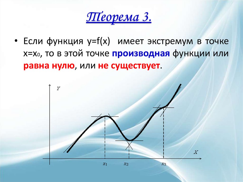 Теорема 3.• Если функция y=f(x) имеет экстремум в точке