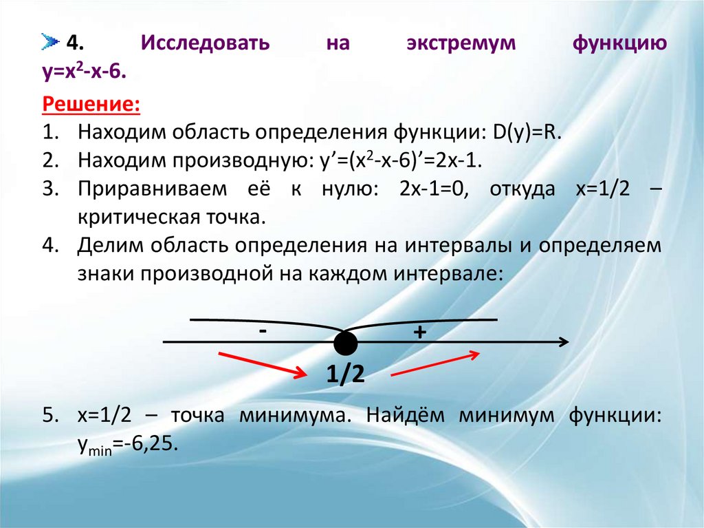 5. x=1/2 – точка минимума. Найдём минимум функции: