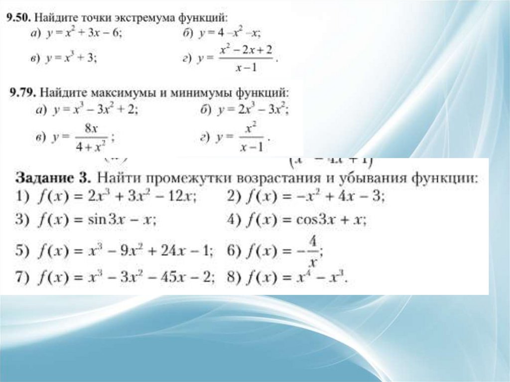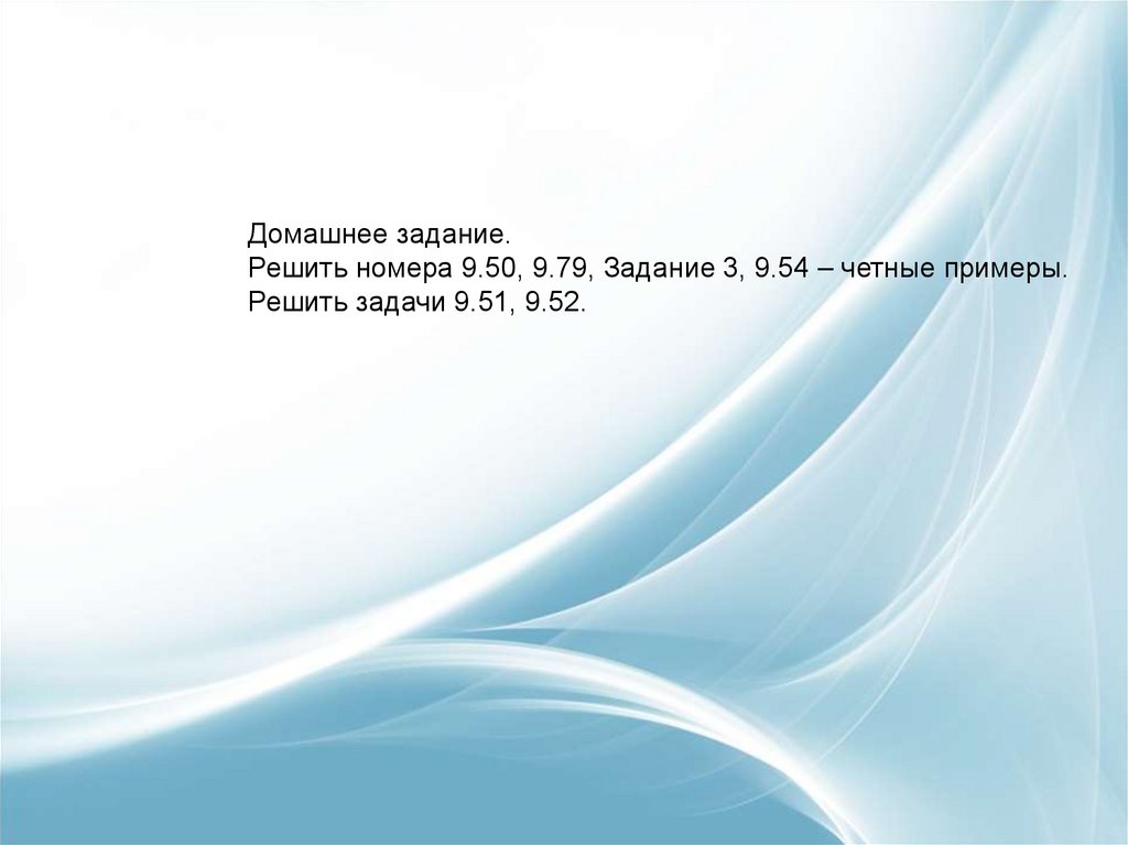 Домашнее задание.Решить номера 9.50, 9.79, Задание 3, 9.54 – четные примеры.