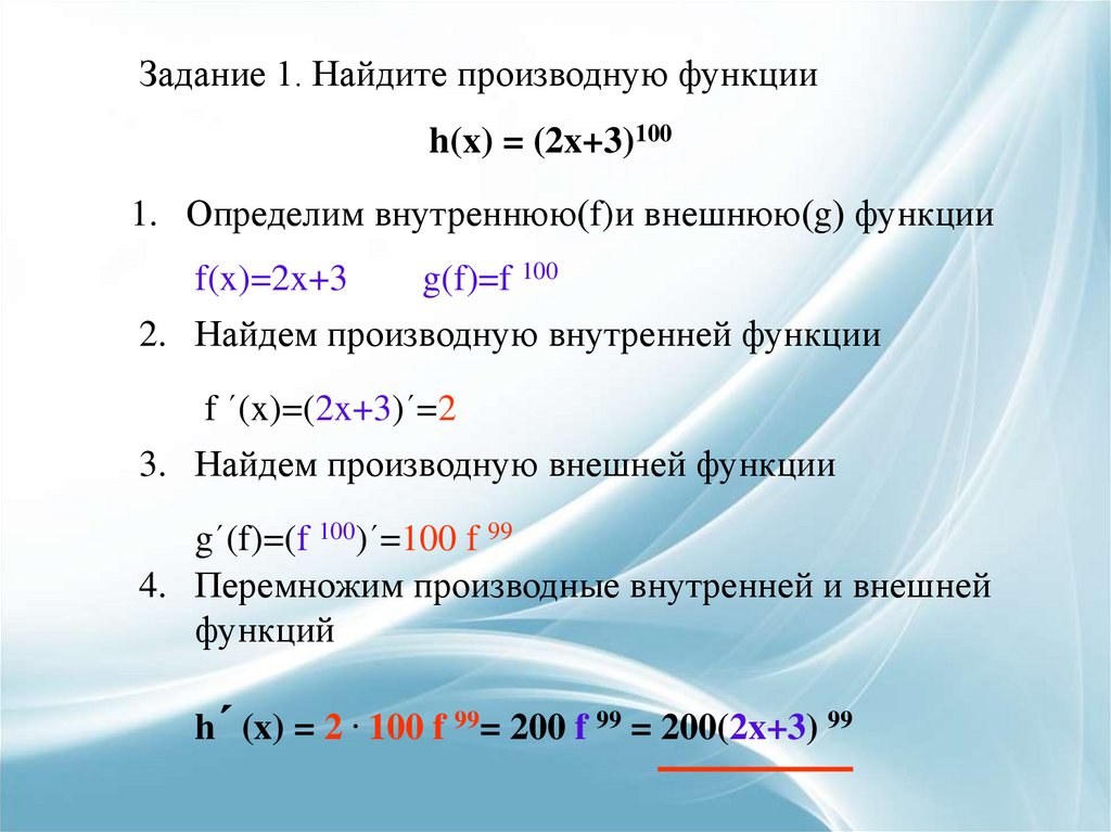 Задание 1. Найдите производную функцииh(x) = (2x+3)100