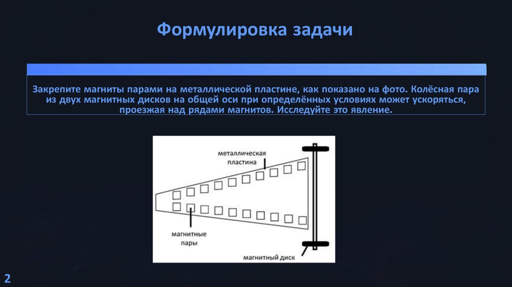 Формулировка задачиЗакрепите магниты парами на металлической пластине, как показано на фото. Колёсная пара