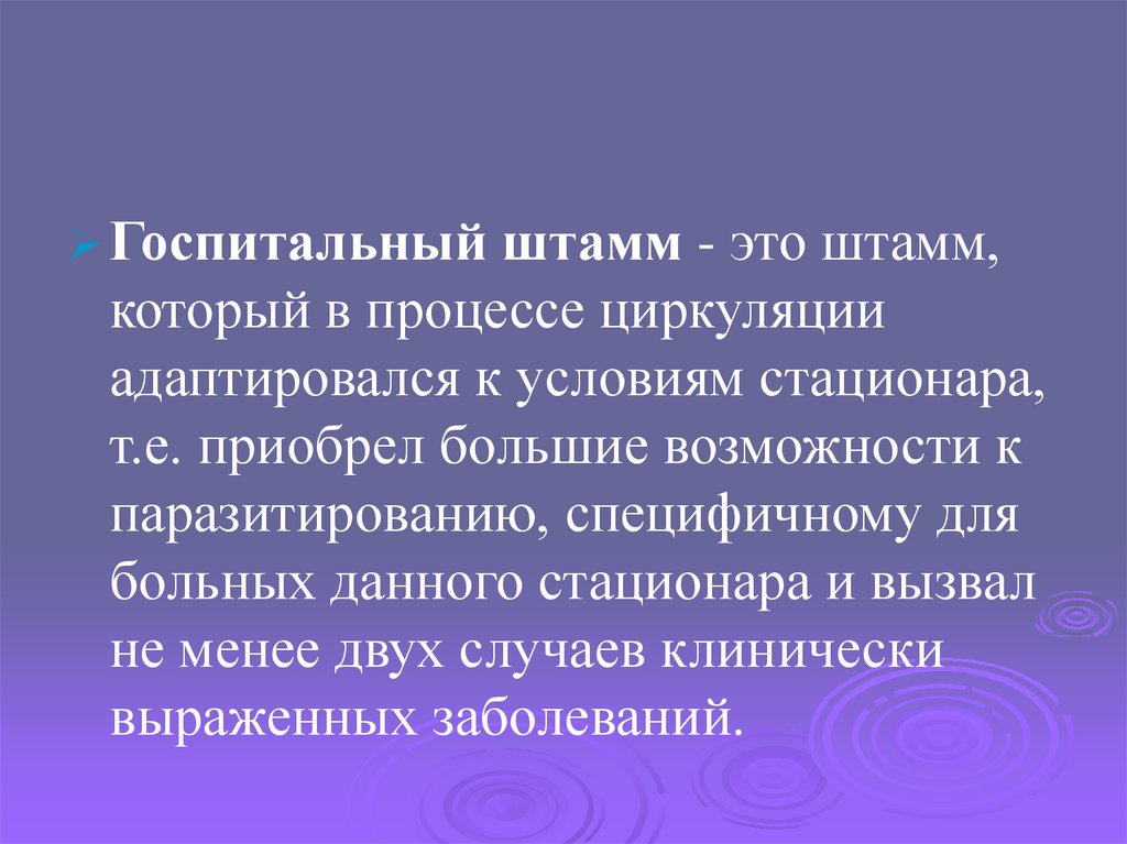 Госпитальный штамм - это штамм,который в процессе циркуляции
