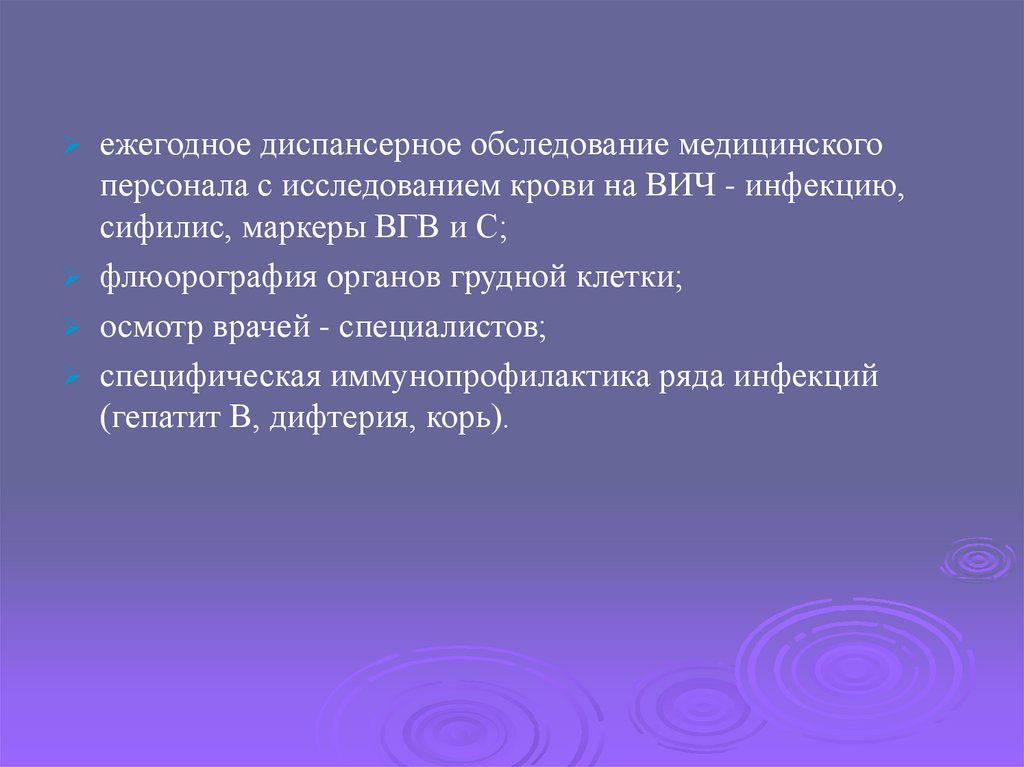 ежегодное диспансерное обследование медицинскогоперсонала с исследованием крови на ВИЧ - инфекцию,