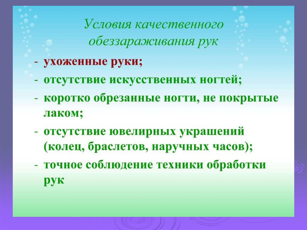 высушиванию, действию УФО,
