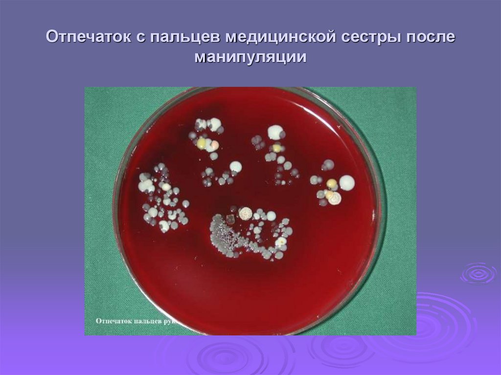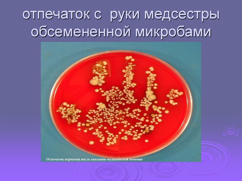 отпечаток с руки медсестрыобсемененной микробами