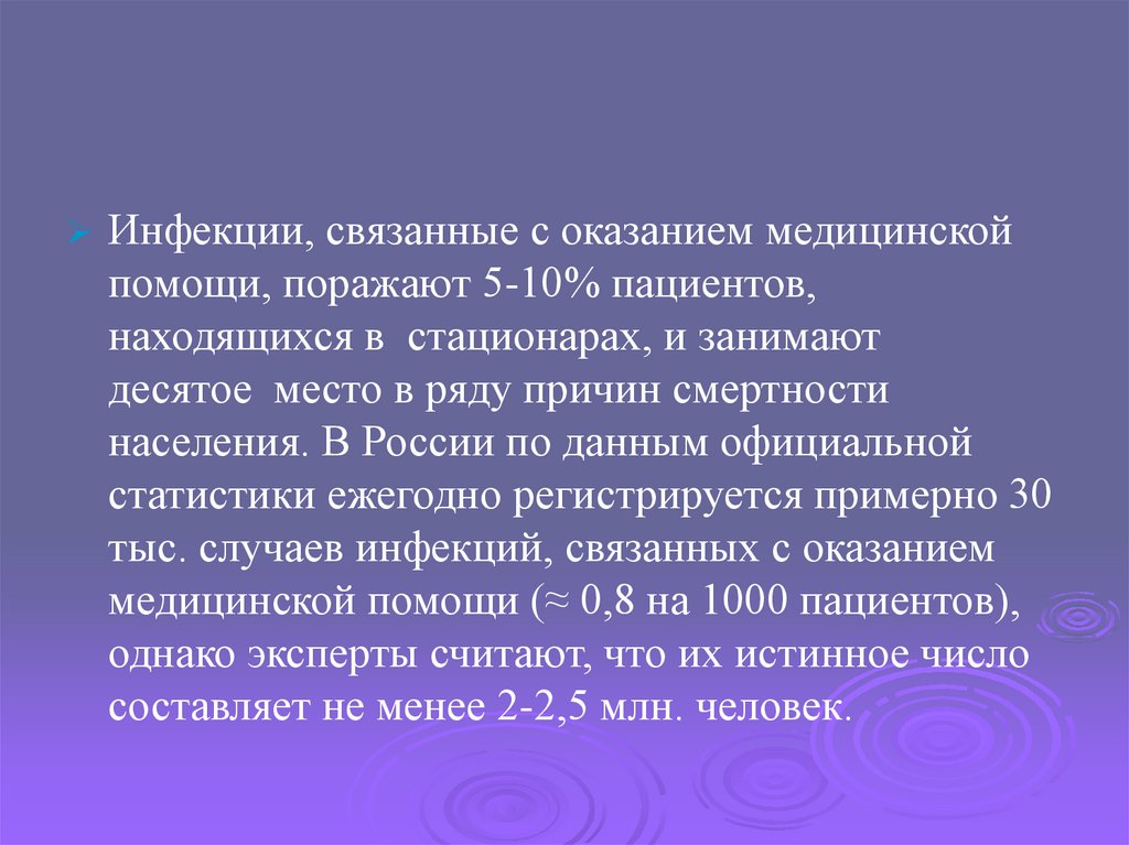 Инфекции, связанные с оказанием медицинскойпомощи, поражают 5-10% пациентов,