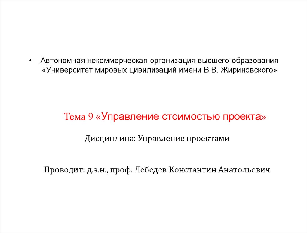 Проводит: д.э.н., проф. Лебедев Константин Анатольевич