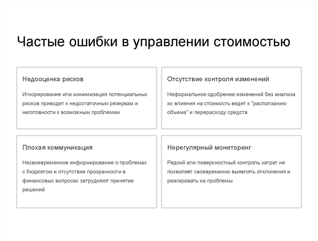 Частые ошибки в управлении стоимостьюНедооценка рисков