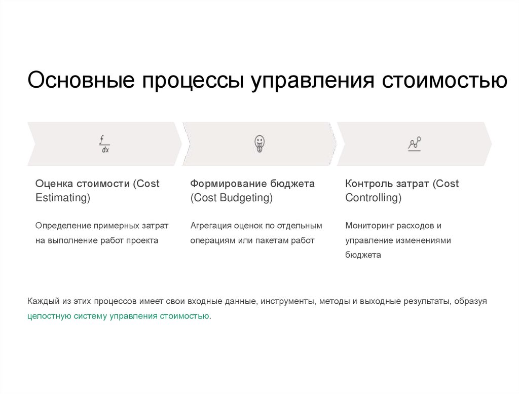 Основные процессы управления стоимостьюОценка стоимости (Cost