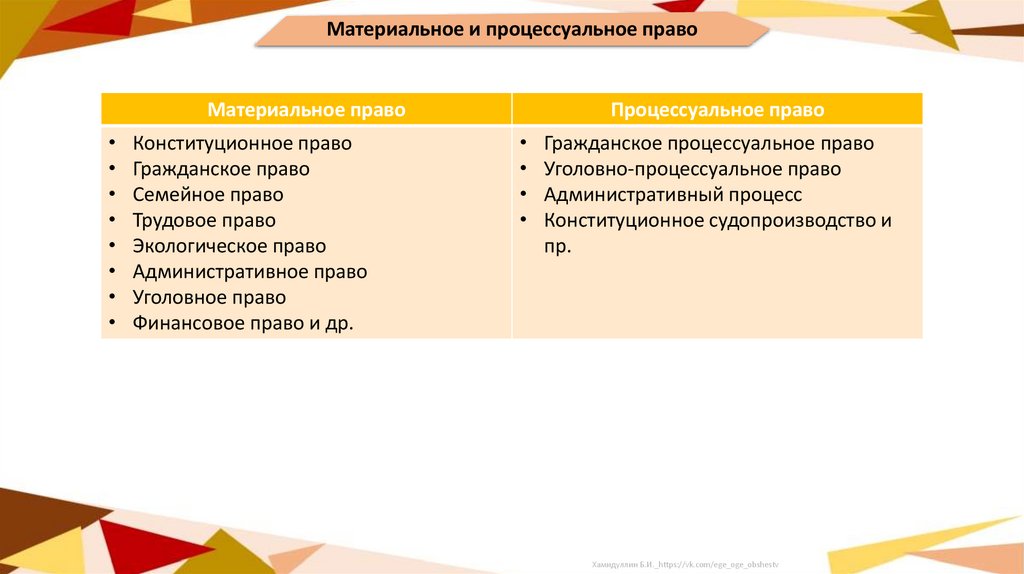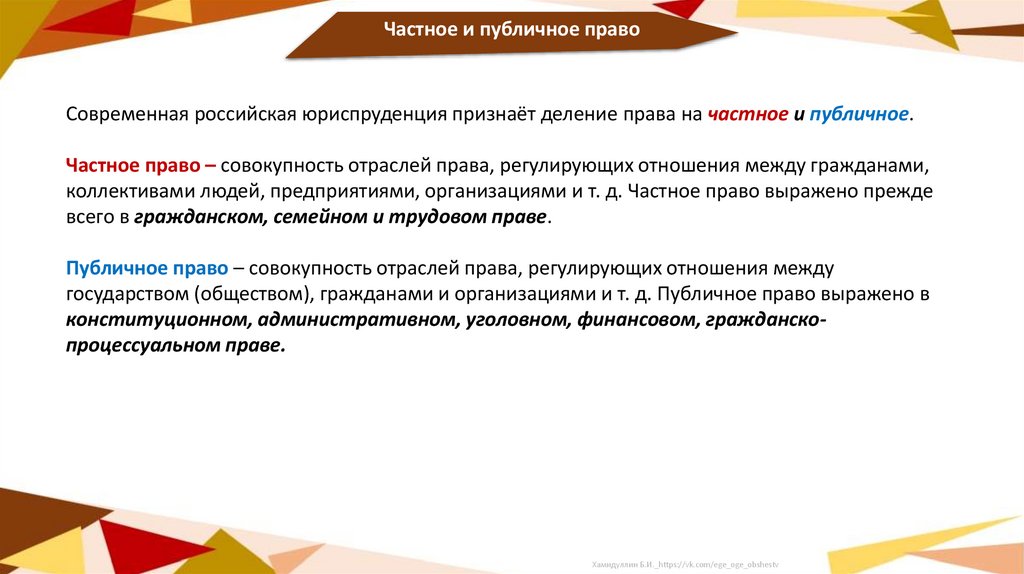 ЕГЭ_5.3 Система права. Отрасли права.Частное и публичное, материальное и процессуальное право,