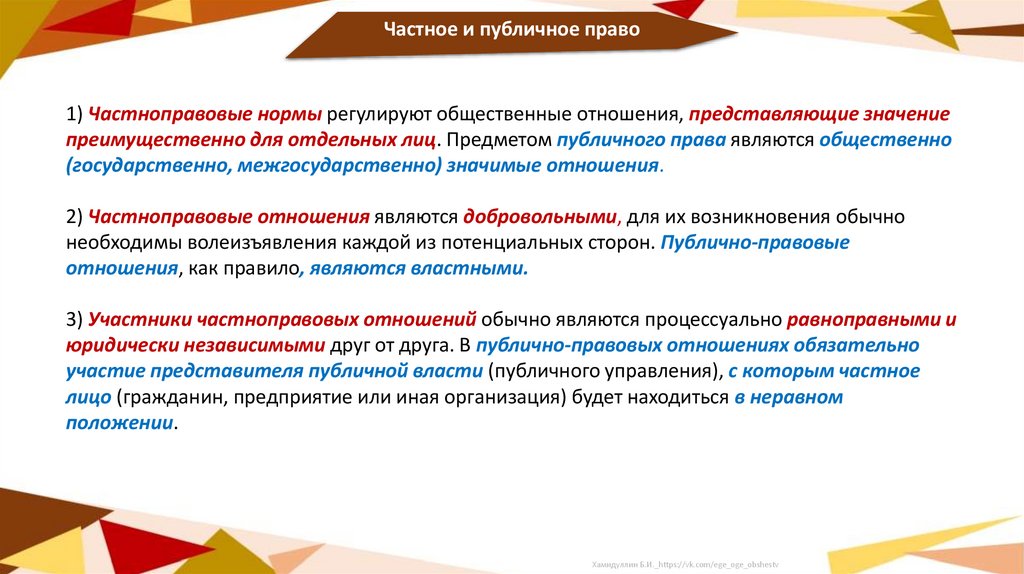 преимущественно для отдельных лиц. Предметом публичного права являются общественно