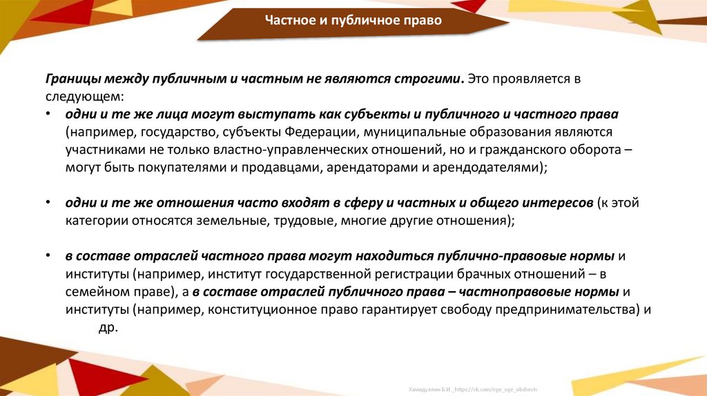 Частное и публичное правоГраницы между публичным и частным не являются строгими. Это проявляется в