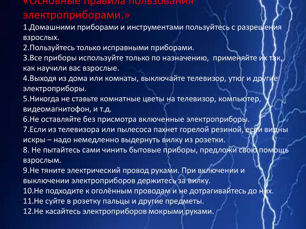 «Основные правила пользованияэлектроприборами.»