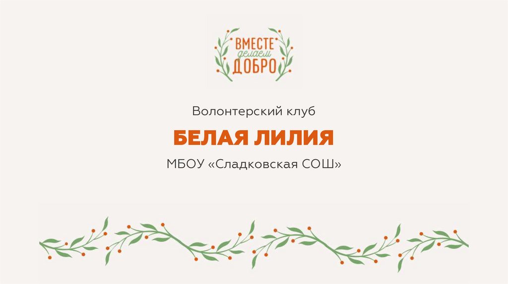 1. Волонтерский клуб БЕЛАЯ ЛИЛИЯ МБОУ «Сладковская СОШ»