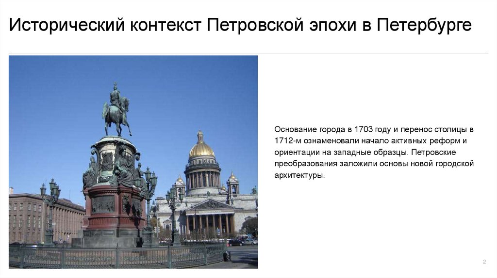 Исторический контекст Петровской эпохи в ПетербургеОснование города в 1703 году и перенос столицы в